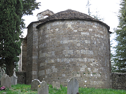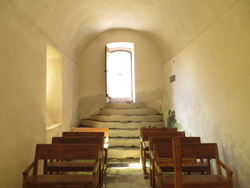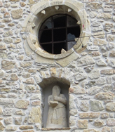 | ペニタン礼拝堂と扉口の上に置かれた頭巾をかぶった苦行会員の彫像 | |||